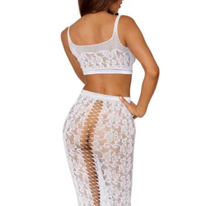 2-teiliges Set, fantasievolles Netz-BH und passende lange Rock – DG12921WHT
