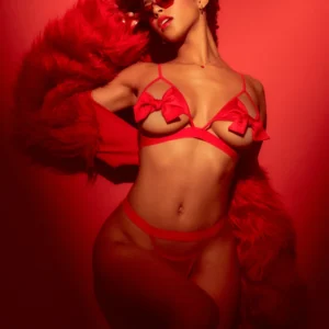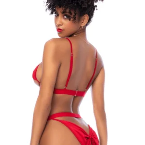 Werden Sie das verführerischste Geschenk der Saison mit diesem gewagten zweiteiligen Set von Mapalé. Entworfen, um zu verführen, kombiniert es ein Oberteil mit offenen Cups, verziert mit verspielten Knotendetails, mit einem passenden String.