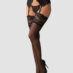 D’un tissu délicat, transparent et finement décoré d’une dentelle noire aux motifs adorables. Choisissez ces bas qui ne demandent qu’à être délicatement dégrafés d’un porte-jarretelles ou d’une guêpière… Mesurez l’impact que cela aura sur votre bien-aimé… Jouez et recommencez… C’est fantastique ! Détails : Bas noirs bordés d’un bandeau de dentelleBas non autoportant, accompagnez-les d’un porte-jarretellesDoux et confortables (90% nylon, 10% élasthanne)