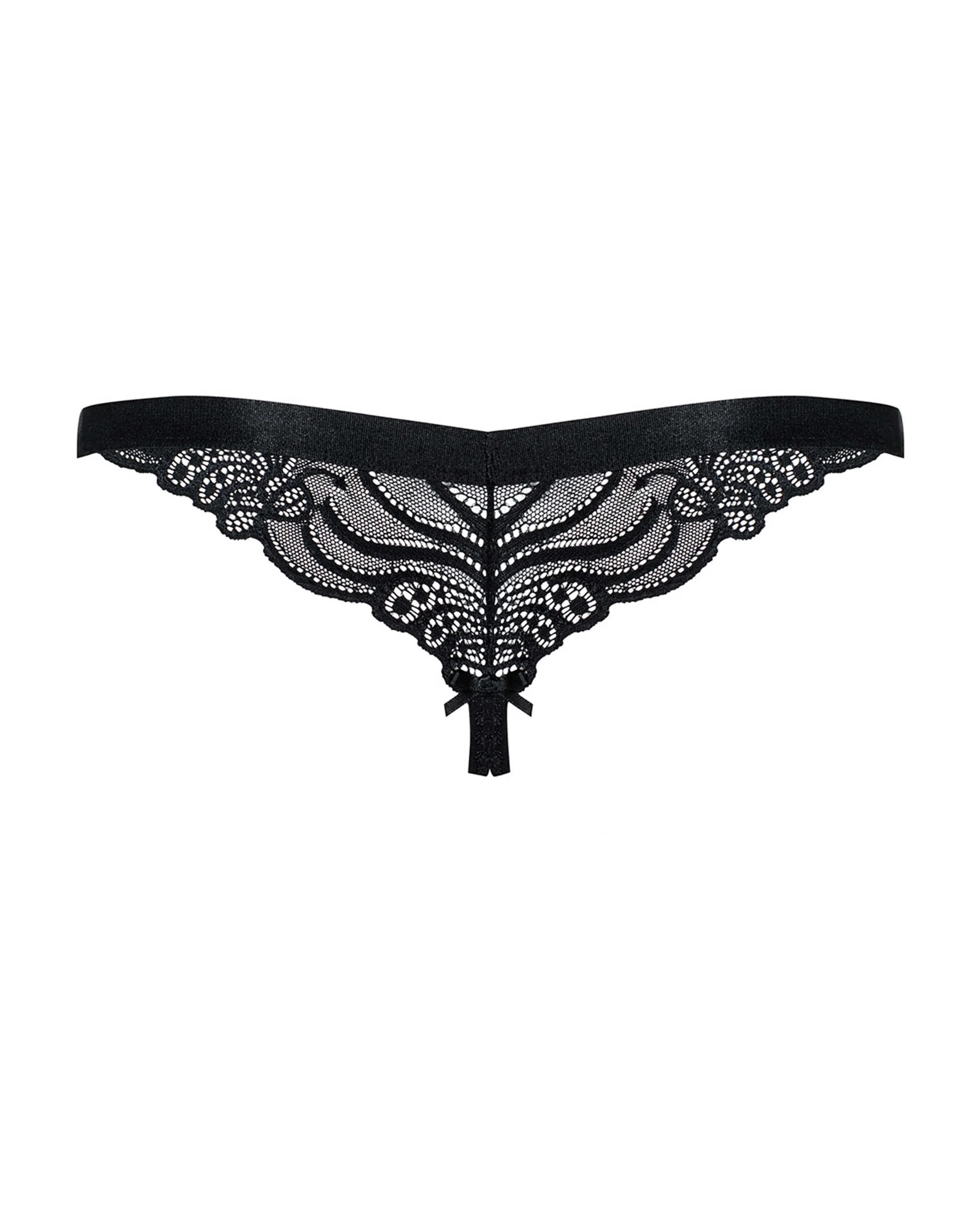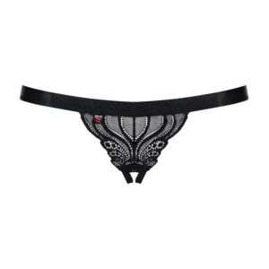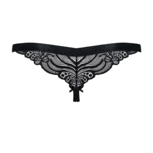 Ein String mit Spitze, verziert mit schönen Mustern. Ein hübscher, elastischer und zarter Riemen für mehr Komfort. Der Schritt ist bei diesem Modell offen. 90% Polyamid, 10% Elasthan