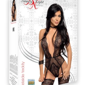Pour séduire votre partenaire, rien de tel que ce magnifique body noir en dentelle de la nouvelle collection Beauty Night. Jouant sur la transparence et soulignant les courbes avec volupté, ce body ultra-féminin est doté d’un décolleté plongeant, d’une fine ceinture décorative et d’un tour de cou.Ses jarretelles intégrées vous permettront d’y associer des bas pour encore plus de sensualité.(*Les bas ne sont pas inclus) Composition : 88% polyester, 12% élasthanne