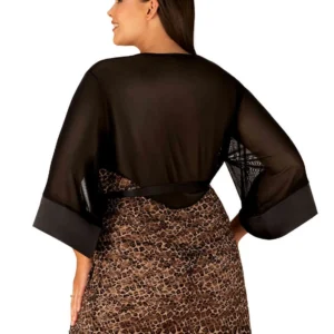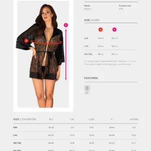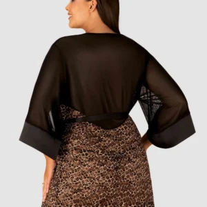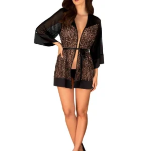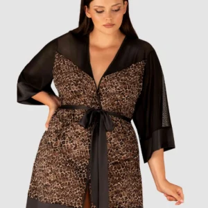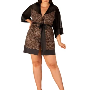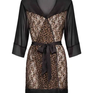 Peignoir Allunes Quel sera le complément parfait à votre ensemble de lingerie préféré ? Bien sûr, un peignoir féminin et celui-ci de la collection Allunes impressionne non seulement par sa coupe sensuelle, mais séduit également par son design hors du commun ! Vous cherchez quelque chose de spécial qui vous aidera à vous sentir plus sexy et plus confiant ? Ce bijou est fait pour vous ! Tous les détails importants : – peignoir Allunes sexy en noir profond – des motifs d’animaux accrocheurs – ils tentent et ravissent ! – matériau translucide sur les manches et le dos – ajoute de l’élégance – finition satinée – un peu de délicatesse – ruban à la taille – coupe parfaite – matière agréable pour le corps (90% polyamide, 10% élasthanne)