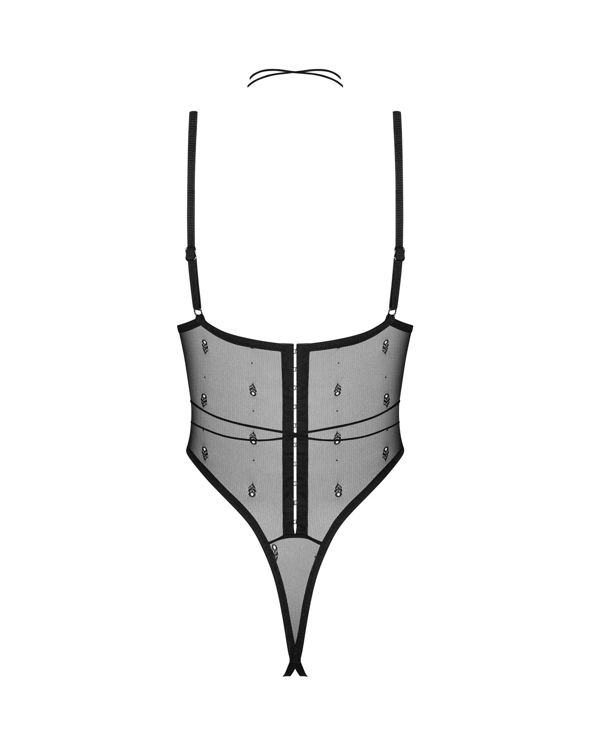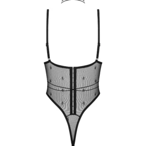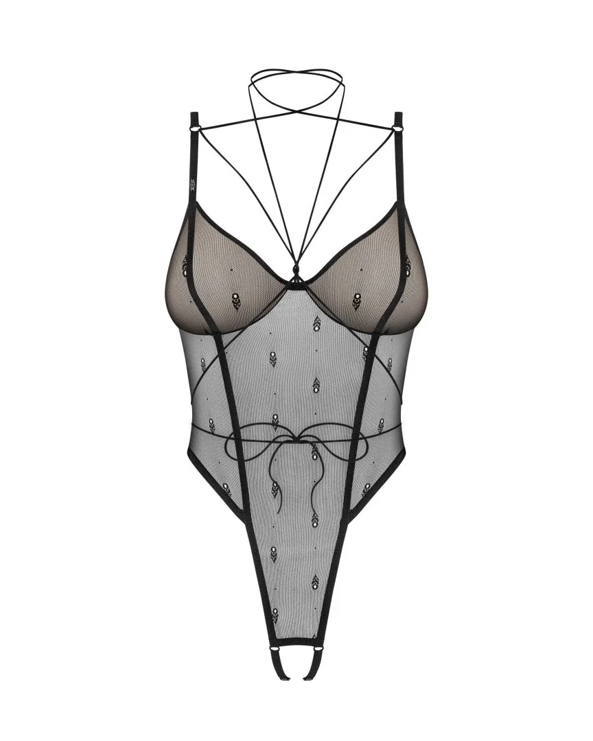Body ouvert Anniverse specialCe body noir avec des embellissements de bon goût garantit confort et look! Cette lingerie vous surprendra par sa coupe non conventionnelle et sa texture délicate. Soyez sensuel quelle que soit l?occasion! – body noir – entrejambe ouverte avec sangles réglables – armatures – maille beige en bonnets souples – fermeture à crochet et à ?il dans le dos- bretelles réglables – matériel transparent avec logo de la marque – sangles autour du cou et de la taille formant un tour de cou ? attachez-le comme vous voulez – 82 % polyamide, 18 % élasthanne – conçus dans l?UE- sans nickel