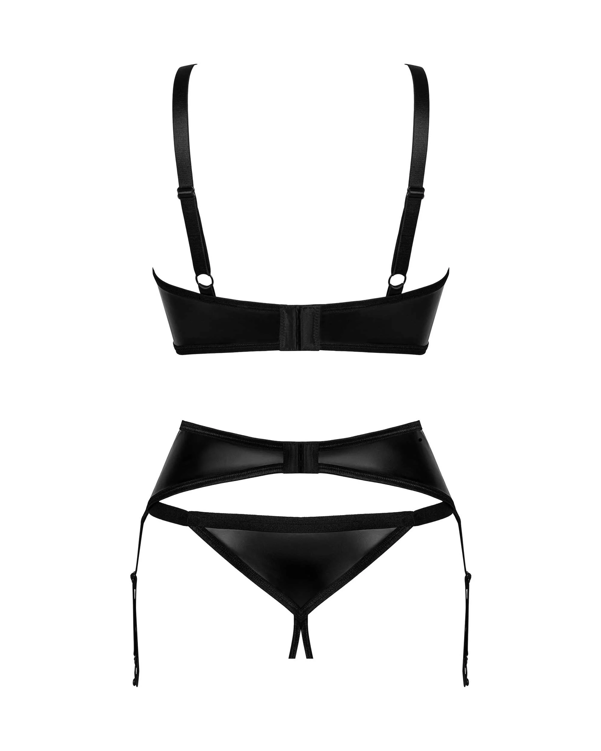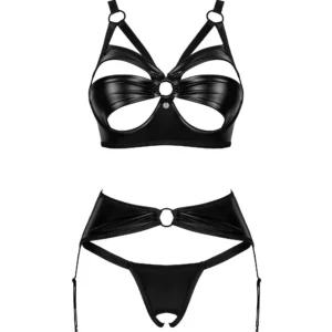 Éveillez vos sens avec cet ensemble Armares non conventionnel et super sexy. Regardez cette coupe inhabituelle qui a été créée pour accentuer votre féminité, attirer les regards et vous inciter à découvrir de nouvelles formes de plaisir. Faites preuve de confiance en vous et préparez-vous à un déferlement de sensations intenses. Découvrez plus de détails :- ensemble de lingerie noire composé d’un string, d’un soutien-gorge et d’un porte-jarretelles- une coupe ouverte – un design séduisant- un excellent ajustement grâce à une fermeture en plusieurs étapes et à des bretelles réglables – bonnets avec armatures – ils mettent la poitrine en valeur- pendentif en argent – un détail intriguant- une matière agréable qui assure le confort Compostion : 100 % polyuréthane ; doublure : 95 % viscose, 5 % élasthanne