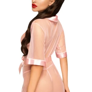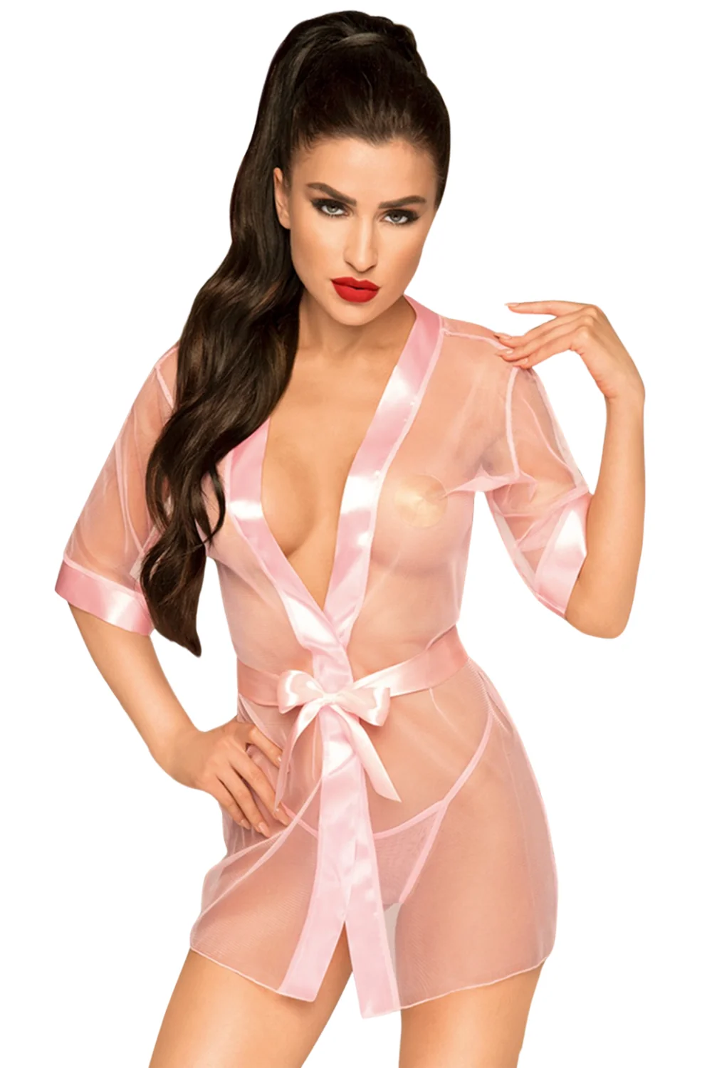 Entdecken Sie die Penthouse-Kollektion mit diesem rosa transparenten Netz-Bademantel mit halblangen Ärmeln. Passender rosa String inklusive. Verstellbare Träger. Zusammensetzung: 90% Polyester / 10% Elasthan. Entdecken Sie den ultimativen Luxus! Unsere sinnliche Penthouse-Lingerie ist in einer hochwertigen Verpackung erhältlich und vollständig plastikfrei und nachhaltig! Die geschmackvolle goldene Verarbeitung und die exklusive Grußkarte machen Ihre Dessous-Box zu einem einzigartigen Kunstwerk.
