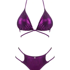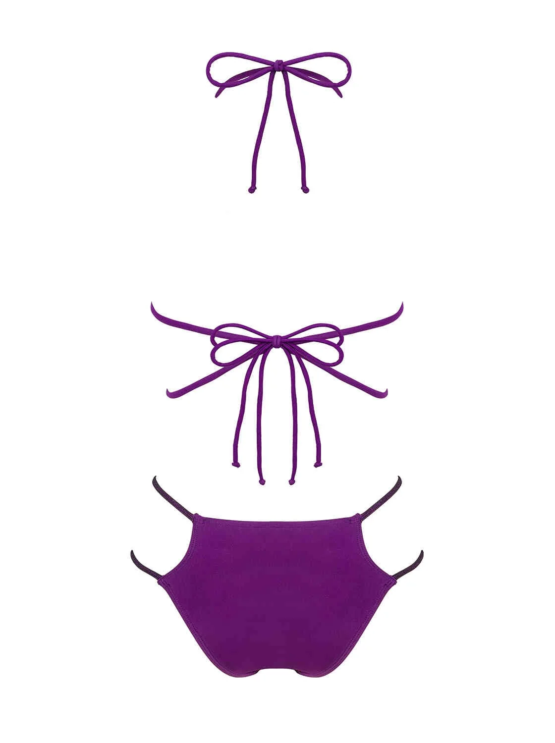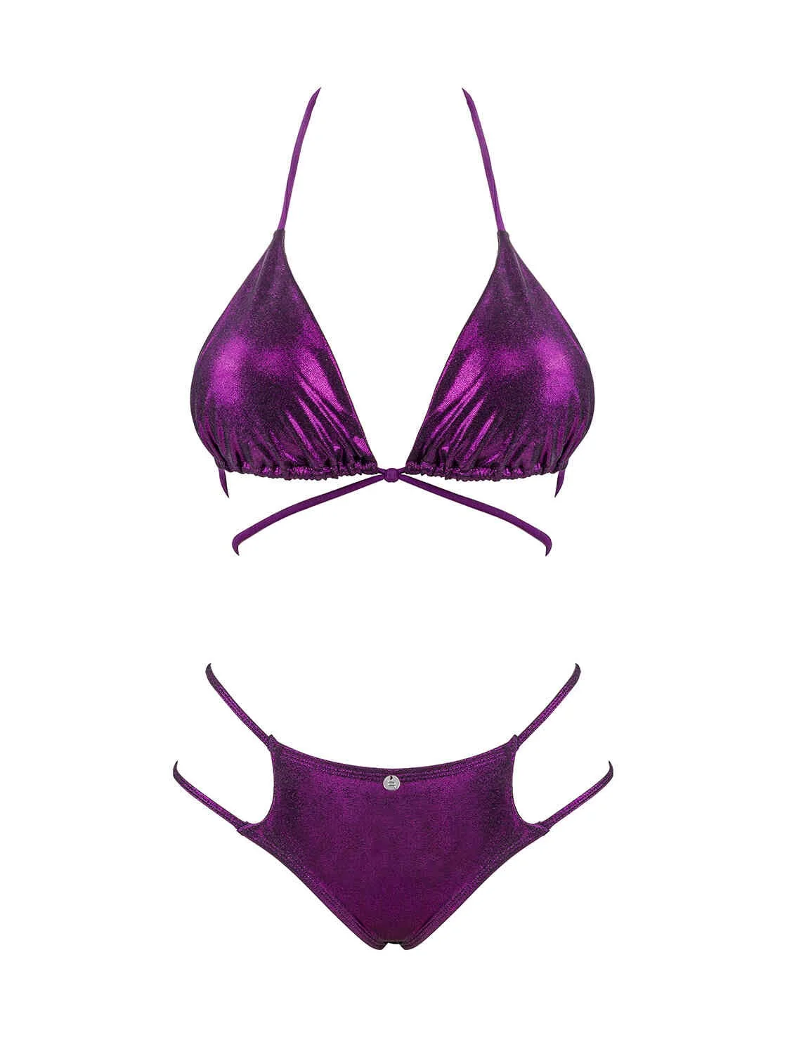 Balitta Bikini lila schimmernd sexy figurschmeichelnd Dreieckscups asymmetrische Unterbrustträger verstellbare Doppelschnürung femininer Schnitt seitliche Hüftbänder elastisches Material