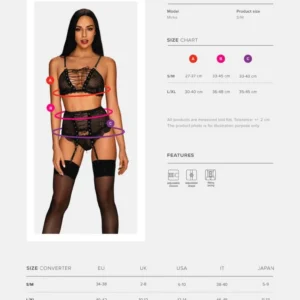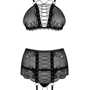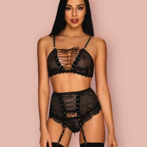 Ensemble Basitta Aimeriez-vous mettre quelque chose de coquet et de captivant? Choisissez cette maille noire unique ! Vous serez étonné par les charmantes décorations comme un laçage sensuel et des anneaux en métal. Basitta est un ensemble que vous voulez porter tous les jours ! Plus de détails ici : – Ensemble Basitta ? soutien-gorge, porte-jarretelles et string – bretelles réglables et fermeture de soutien-gorge en plusieurs étapes – laçage ajusté sur le buste et le ventre – anneaux en métal décorant le soutien-gorge et le porte-jarretelles – bretelles réglables – ajustement parfait – une autre fermeture à plusieurs étages – à l’arrière du porte-jarretelles – string en dentelle très féminin – maille noire décorée de dentelle florale ? couleur profonde, douceur et design ravissant – tissus élastiques (90% polyamide, 10% élasthanne)