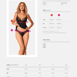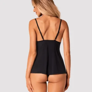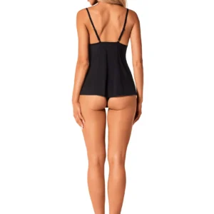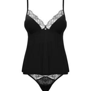 Bella Rou Top & Culotte Das Bella Rou Set, bestehend aus einem Top und einer Culotte, ist ein Zeichen von Sinnlichkeit und Sexappeal. Diese Kollektion lässt Sie sich besonders und kokett fühlen. Der weiche Stoff und der bequeme Schnitt werden Sie dazu verleiten, es ständig tragen zu wollen und nie darauf verzichten zu wollen… na ja, vielleicht mit ein paar Ausnahmen! Entdecken Sie mehr Details: – das Set umfasst ein schwarzes Top und eine Culotte – eine florale Stickerei auf dem Tüll schmückt das Bustier – eleganter Anhänger zwischen den Brüsten – auffällig – verstellbare Träger – angenehme Stoffe (85% Polyamid, 15% Elasthan)