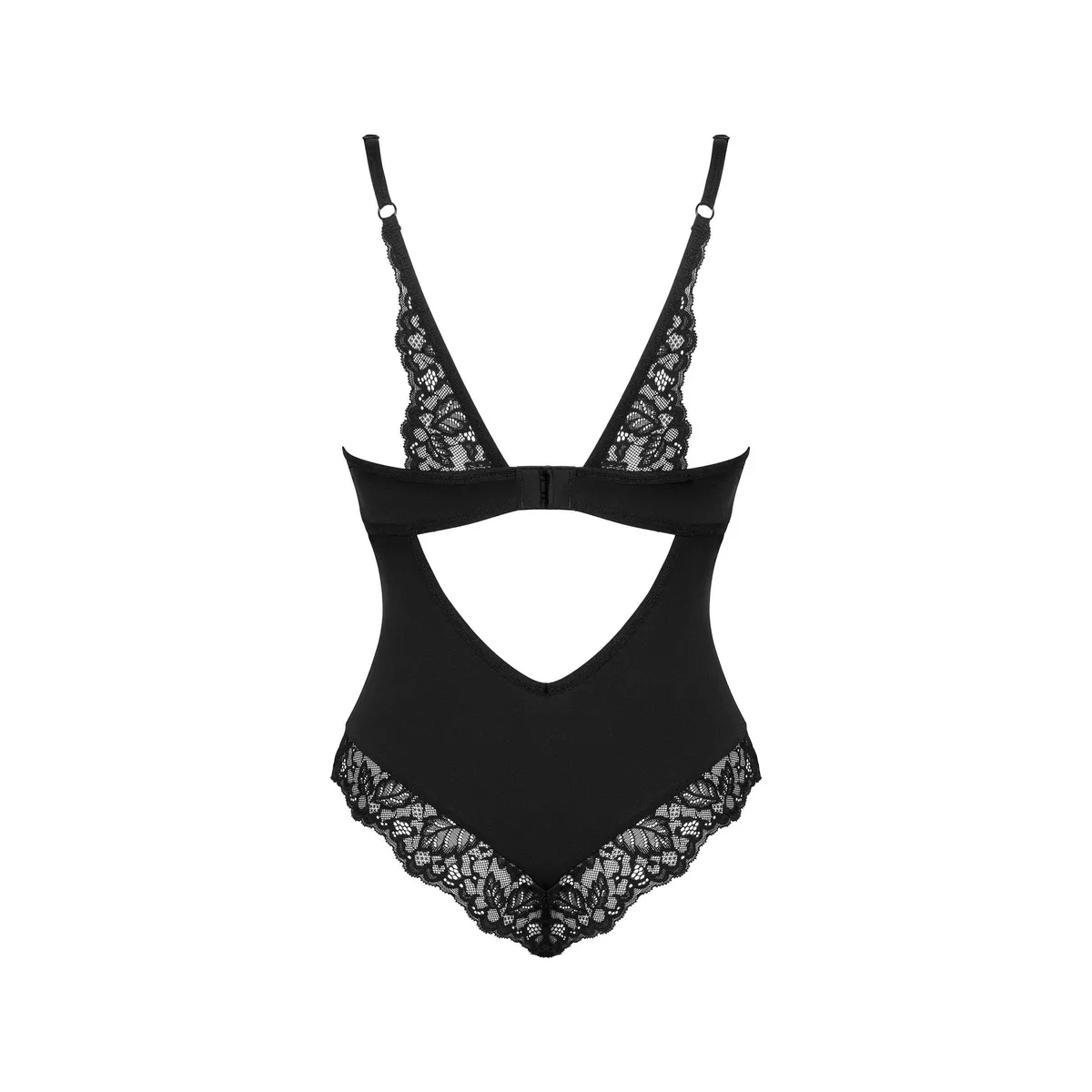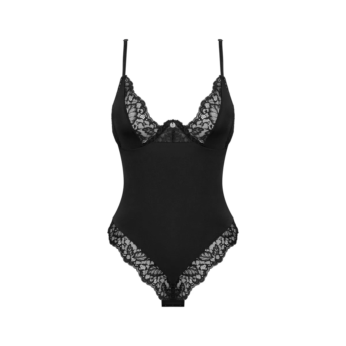 Teddy Bellastia Spüren Sie die samtige Berührung des Bellastia-Bodys auf Ihrer Haut. Der tiefschwarze Stoff wird Ihren Körper schmücken und Ihre Reize sinnlich betonen. Spielen Sie wie ein Virtuose mit den Accessoires, um sich im Schlafzimmer selbstbewusst zu fühlen und mit subtiler Schönheit zu begeistern. Entdecken Sie mehr Details: – Sinnlicher schwarzer Teddy – Ein klassischer Schnitt, der die weiblichen Kurven betont – Hervorragende Passform dank verstellbarer Träger und mehrstufigem Verschluss – Silberner Anhänger ? elegantes Detail – Verstellbarer Verschluss im Schritt – Bügel, die die Brust perfekt betonen – Spitze und elastischer Stoff ? eine perfekte Kombination (85% Polyamid, 15% Elasthan)