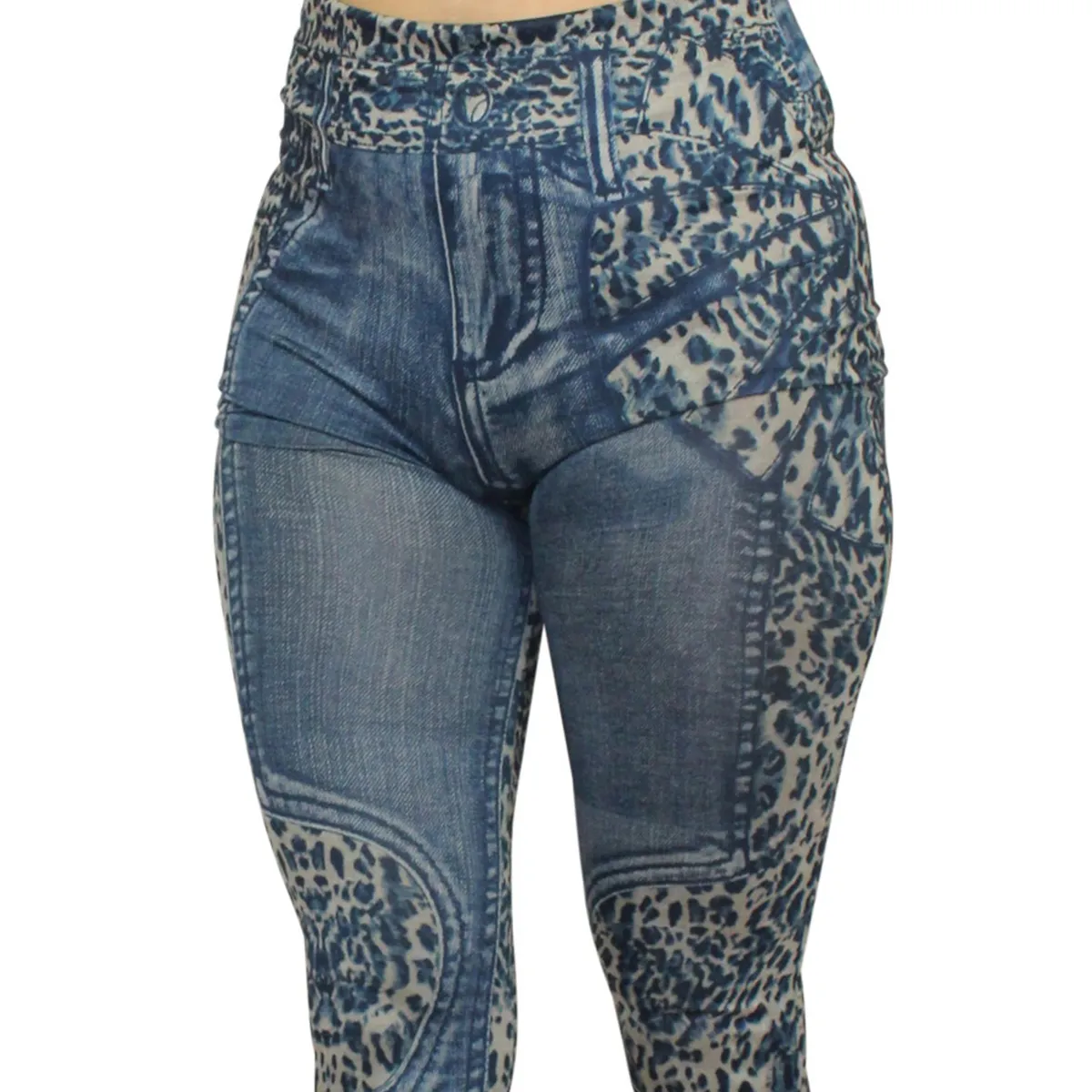 Blaue Leggings mit Jeans-Effekt und Leopardenmuster – FD1017
