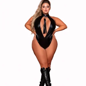 Schreibe die erste Rezension für „Body aus Kunstleder in großer Größe, dehnbar mit genietetem Kragen und Peitsche – DG12450XBLK“