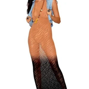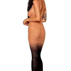 Bodystocking-Kleid mit Zebramuster in kupferfarbenen Tönen – DG0488BKC