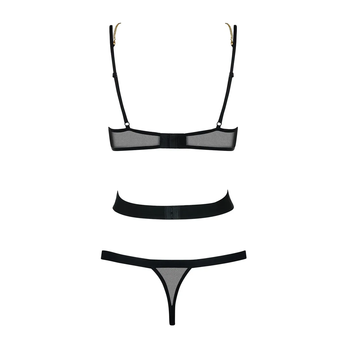 Unglaublicher Body String der Dessous-Marke Obsessive. Dieser sehr aufregende Body ist ein echtes Kunstwerk auf dem Körper. Der verstellbare obere Teil mit Bügeln wird durch eine Schmuckkette veredelt, während die Bauchbänder elastisch und verstellbar sind. Dieser sexy Body endet mit einem unwiderstehlichen Stringteil. Die Zusammensetzung dieses schwarzen Bodys ist: 94% Polyamid und 6% Elasthan. Zögern Sie nicht, die Modelle der Bondy Obsessive Kollektion zu entdecken.