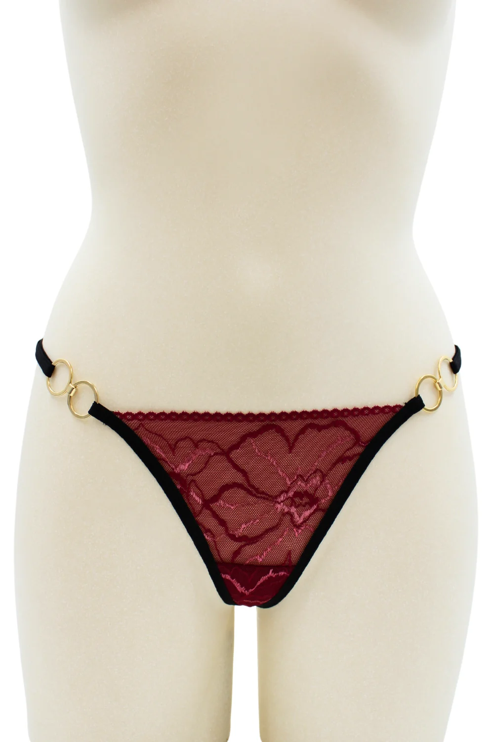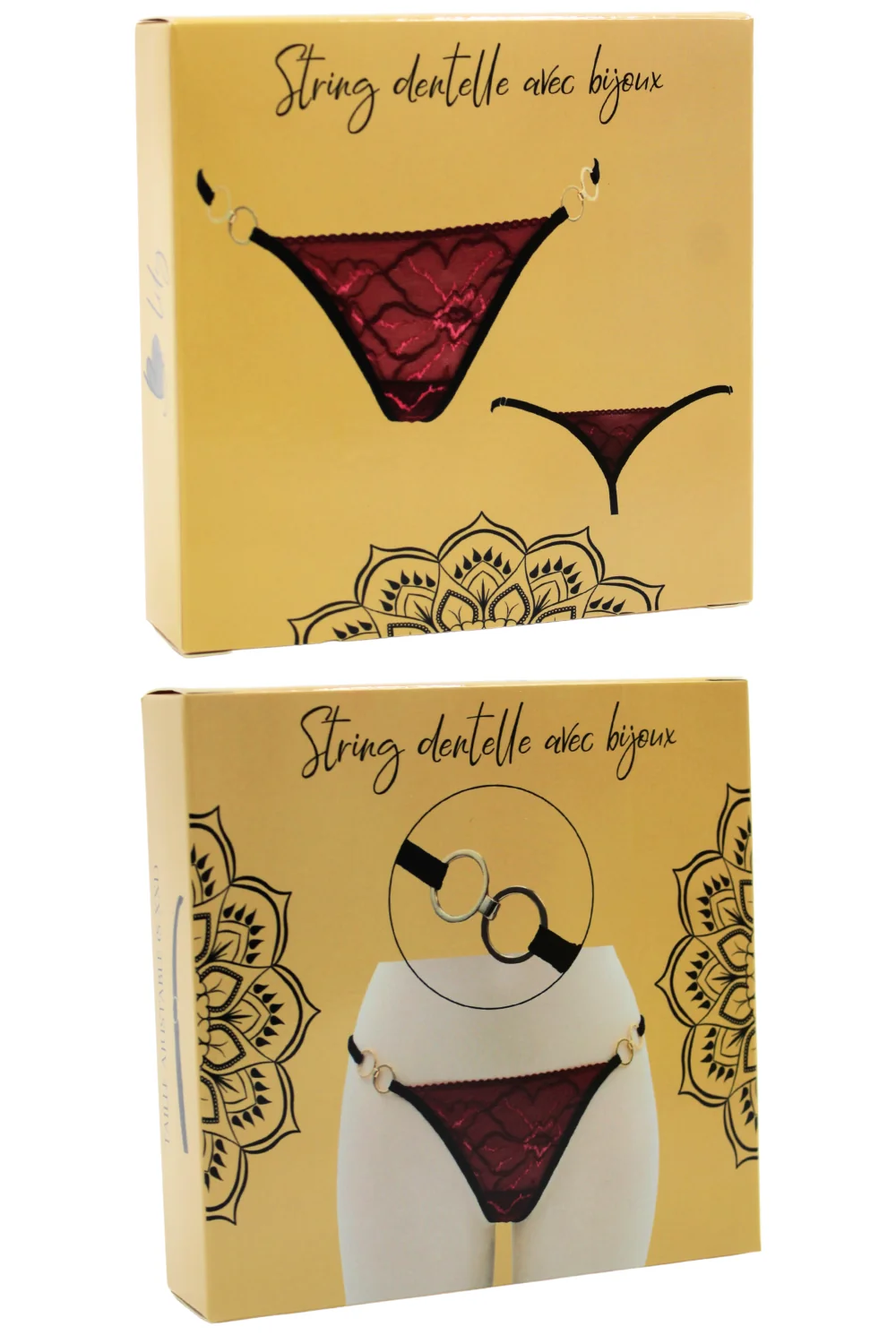 Bordeauxfarbener String mit abnehmbaren Ringen – PM05GOPC-BRED