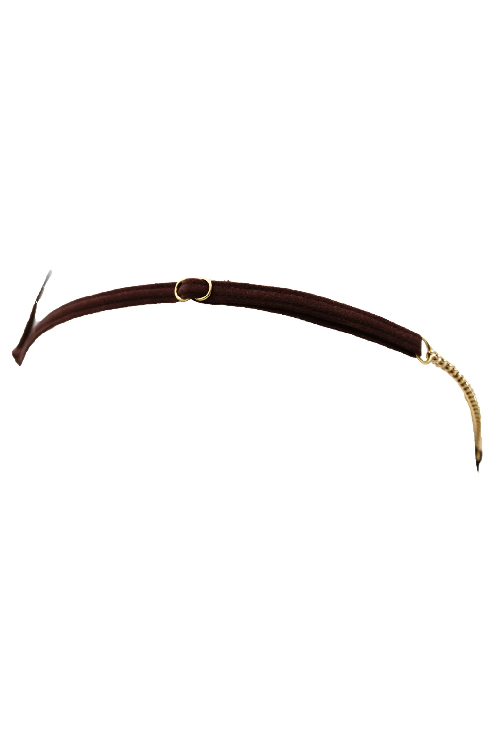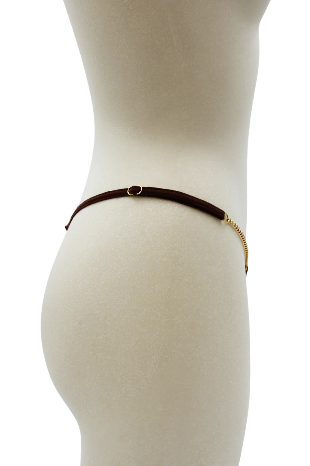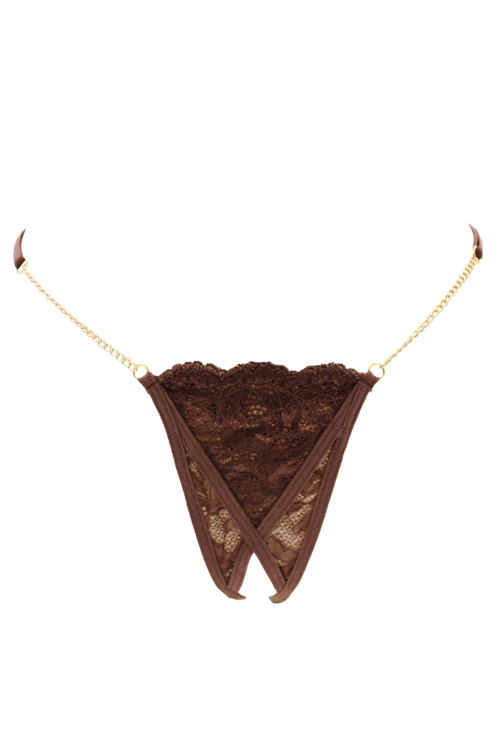 Brauner Spitzenstring offen mit goldenen Ketten – PA01MBRW