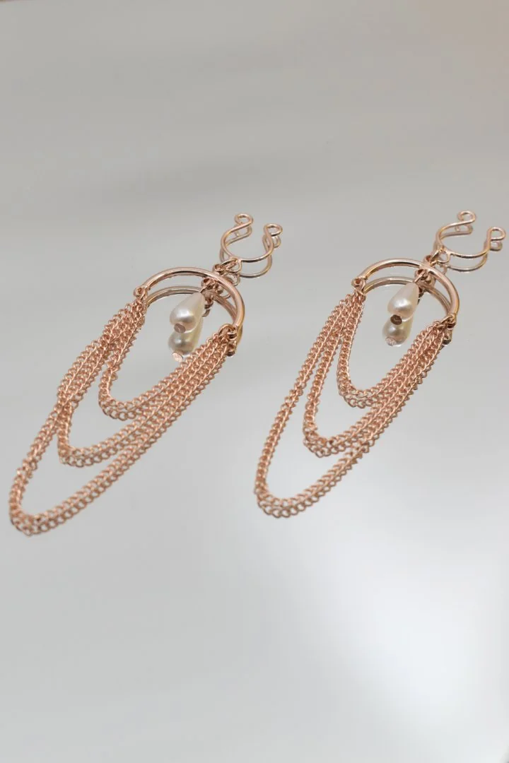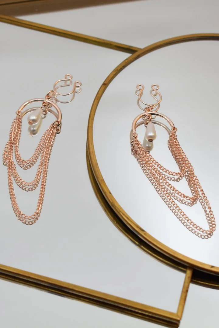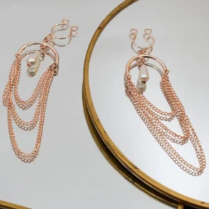 Brustschmuck mit 3 roségoldenen Kettchen und einer Perle – SO-0187