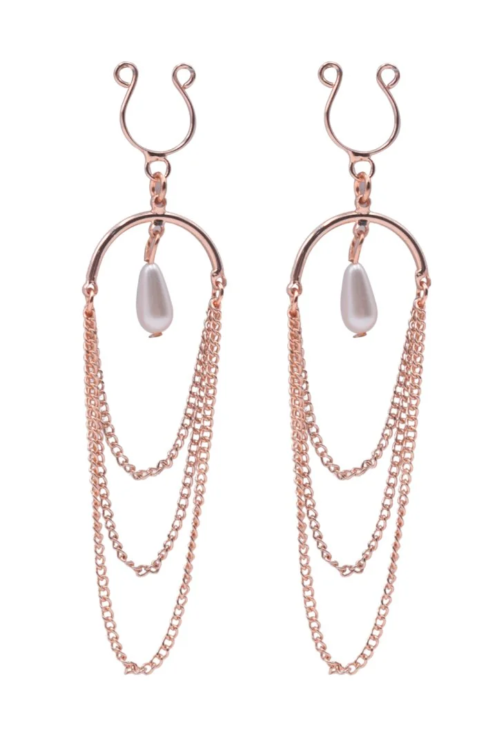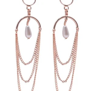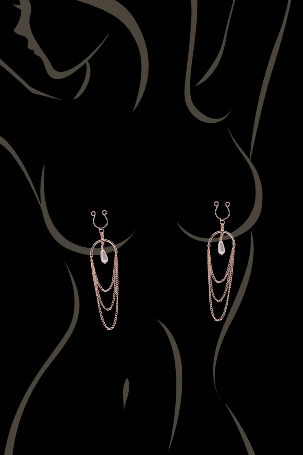 Verleihen Sie Ihrer Brust mit diesem Set von Brustwarzenklemmen einen Hauch von Eleganz. Es besteht aus feinen Klemmen mit 3 roségoldenen Kettchen und einer kleinen perlmuttfarbenen Tropfenperle. Sehr einfach auf Ihre Brustwarzen anzupassen. Farbe: Roségold Einfach anzulegen mit diesen Klemmen Material: Edelstahl