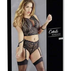 Bügel-BH und Strumpfhalter mit diesen abnehmbaren schwarzen Handschellen, große Größe – OR2213613BLK