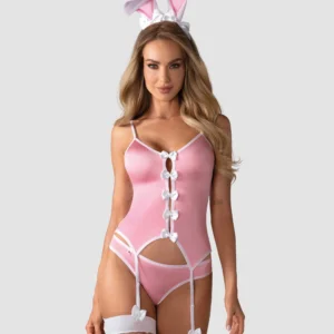 Bnny ludique vous amènera au pays des merveilles obsessionnelVérifiez tous les détails- charmant costume de lapin coquin- bretelles réglables- Design mettant l’accent sur la poitrine – look sexy- jolis n?uds et fentes séduisantes sur le devant- laçage corset au dos – ajustement parfait garanti- jarretelles ajustables- le costume comprend un haut avec des jarretières, une culotte avec une queue de lapin, des bas et des oreilles- matières douces et élastiques (haut, culotte, oreilles : 88% polyester, 12% élasthanne ; bas : 80% nylon, 20% élasthanne).