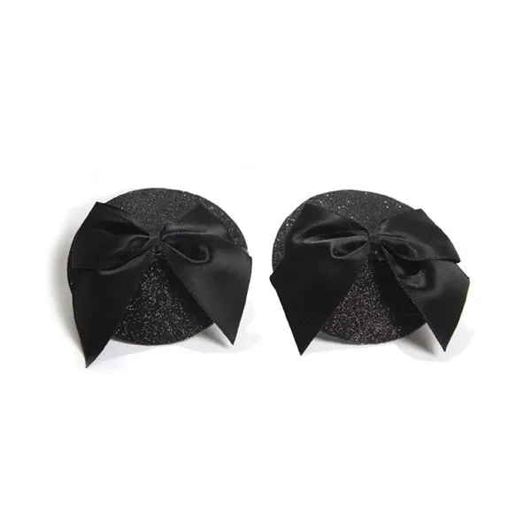 Burlesque Nippelabdeckungen mit Schleife und Pailletten – Schwarz