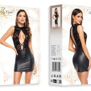 Une robe sexy et élégante pour les femmes audacieuses qui apprécient le style classique. La partie supérieure est faite de beau tulle avec un motif floral velouté.Le décolleté profond à l?avant et à l?arrière ajoute du charme. La partie inférieure est une mini-jupe en faux cuir. La robe a une fermeture velcro au niveau du cou.La robe est parfaite non seulement pour les soirées avec l?autre moitié, mais aussi pour les fêtes. L?ensemble comprend des culottes assorties.L?ensemble est livré dans un élégant emballage avec une photo présentant le produit.Taille : S/M et L/XLTaille S/M : (Poitrine : 81-91 cm, B-C, Taille : 56-71 cm, Hanche : 85-97 cm)Taille L/XL : (Poitrine : 91-107 cm, C-D, Taille : 71-91 cm, Hanche : 97-112 cm)Matière : 88% polyester, 12% élasthanne
