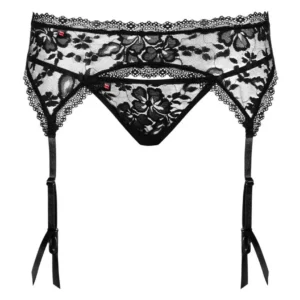 Sexy porte jarretière – ensorcelé ! Délicate dentelle avec un motif floral. Finition avec une dentelle subtile. Sangles jarretelles réglables. String en dentelle inclus. Composition : 90% Polyamide, 10% Élasthanne.