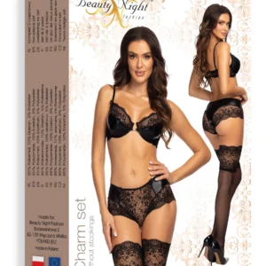 Présentation du Charm Set ? un ensemble de lingerie qui enchante par son élégance subtile et son charme unique. Parfait pour les femmes qui apprécient le luxe et souhaitent mettre en valeur leur féminité de la plus belle des façons. Le Charm Set allie classe et sensualité délicate qui ne manquera pas de captiver.Principales caractéristiques du produit :Matériau luxueux : Une combinaison de dentelle délicate et de matériau brillant donne à l?ensemble un caractère distinctif, combinant élégance avec un soupçon de bord.Parfait ajustement : Les bonnets souples avec bretelles réglables offrent un soutien et un confort, améliorant magnifiquement les courbes naturelles et s?adaptant aux besoins individuels.Détails gracieux : Les motifs en dentelle sur la culotte ajoutent une touche de charme, créant une finition exquise qui se délecte avec sa subtilité.Style polyvalent : parfait pour les moments romantiques ou le quotidien, offrant un sentiment de luxe et de confort.Une excellente idée cadeau! Le Set de Charms est un choix idéal pour un homme à la recherche d?un cadeau élégant et raffiné pour son partenaire. L?ensemble est livré dans une boîte élégante, prête à être offerte pour toute occasion spéciale. Taille : S/M, L/XL et 2XL/3XLTaille S/M : (Poitrine : 81-91 cm, B-C, Taille : 56-71 cm, Hanche : 85-97 cm)Taille L/XL : (Poitrine : 91-107 cm, C-D, Taille : 71-91 cm, Hanche : 97-112 cm)Taille 2XL/3XL : (Poitrine : 107-120 cm, D-E, Taille : 91-104 cm, Hanche : 110-126 cm)Matière : 85% polyamide, 10% élasthanne, 5% polyester