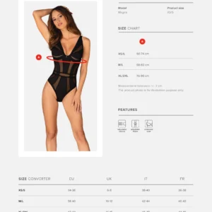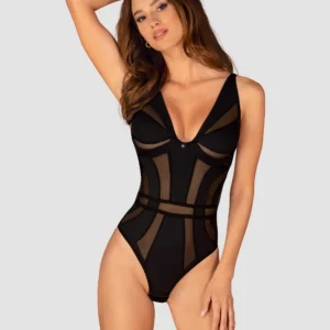 Chic Amoria body Ajoutez du luxe à votre garde-robe et choisissez ce nounours chic. La combinaison unique de tissus empêchera quiconque de vous quitter des yeux. De plus, sa coupe alléchante et confortable fera des merveilles pour accentuer tous vos attributs. Vous devez simplement l’avoir ! Découvrez plus de détails:- body noire- fermeture à plusieurs niveaux et bretelles réglables – assurent un ajustement parfait- poitrine soulignée grâce aux armatures- pendentif en argent ? un ajout intrigant- tissus efficacement combinés – ajoutez de la classe et assurez votre confort (94% polyamide, 6% élasthanne)