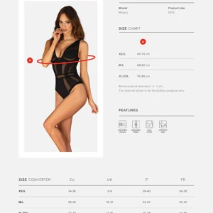 Body ouvert Chic Amoria Si vous recherchez une lingerie de bon goût qui pimentera l?atmosphère de votre chambre tout en vous donnant un look chic, voici la proposition parfaite pour vous. Cet élégant teddy mettra en valeur votre silhouette, ajoutant du piquant à l’ensemble grâce à son entrejambe ouvert. Permettez-vous de vous déchaîner un peu ! Découvrez plus de détails:- body noir-ajustement parfait grâce aux bretelles réglables, à la fermeture à plusieurs niveaux et aux armatures- pendentif élégant ? un détail intéressant- coupe ouverte ? une solution unique- une combinaison de maille transparente et de tissu lisse ? un mélange intéressant- tissu doux au toucher ? assure le confort (94% polyamide, 6% élasthanne)