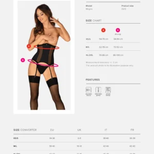 Corset et string chic Amoria Vous recherchez un style tendance et minimaliste ? Cet ensemble est tout à fait parfait ! La coupe géométrique mettra en valeur votre taille, empêchant quiconque de vous quitter des yeux. Que vous décidiez ou non d’ajouter des bas au corset, l’effet waouh est garanti ! Découvrez plus de détails:- corset et string noirs- désossage vertical ? met en valeur votre silhouette- possibilité d’attacher des bas à l’aide de bretelles amovibles- ajustement parfait grâce à une fixation en plusieurs étapes- pendentif brillant ? un détail intéressant- tissu doux au toucher ? garantie de confort (94% polyamide, 6% élasthanne)