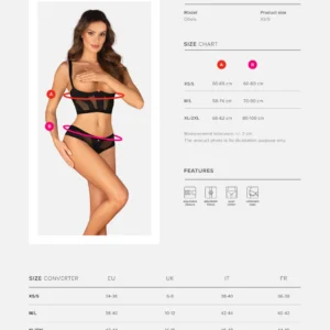 Ensemble ouvert 2 pièces Chic Amoria Voulez-vous faire battre le c?ur de votre partenaire plus vite ? Vous l?avez couvert (ou peut-être pas littéralement) avec cet ensemble ! Il suffit de regarder ces découpes alléchantes combinées à un motif géométrique : il est difficile de les quitter des yeux. Prêt pour une avalanche de compliments ? Découvrez plus de détails:- soutien-gorge et string noirs- coupe ouverte ? pour enflammer l’atmosphère- fermeture en plusieurs étapes, bretelles et armatures réglables ? garantie d’un ajustement parfait- pendentif brillant ? un détail intéressant- tissus originaux – ajoutent de la classe et assurent votre confort (94% polyamide, 6% élasthanne)