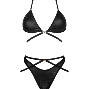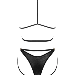 Ensemble Cobra Nive Vous recherchez un ensemble de lingerie unique avec une touche d’épice ? Vous êtes au bon endroit ! Cobra Nive est une combinaison d’imprimés animaliers sexy avec des bretelles tentantes qui stimuleront l’imagination ! Si vous avez envie d’une soirée coquine avec votre bien-aimée, dans cette tenue vous êtes assuré d’en avoir une ! Plus de détails ici : – Ensemble Cobra Nive noir : soutien-gorge et culotte inclus- soutien-gorge à bonnets triangulaires – bel aspect de la poitrine- bretelles réglables- bretelles asymétriques sous la poitrine avec possibilité de réglage – une silhouette merveilleusement mise en valeur- soutien-gorge avec une boucle confortable et fermée sous les seins – gage de confort- ligne de culotte surélevée avec des bretelles décoratives – des hanches très sensuelles !- culotte fermée sur les côtés par une boucle dorée – élégance et confort- les lanières épicées sous le derriere offriront une expérience inoubliable- matière agréable et agréable au toucher (90% polyamide, 10% élasthanne)