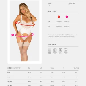 Description Vous êtes à la recherche d’un corset exceptionnellement féminin et séduisant, plein de sex-appeal ? Vous venez de trouver le parfait ! Le corset apparemment innocent de la collection Amor Blanco tente, attire et enflamme les sens. La coupe sexy soulignera parfaitement vos courbes, et la dentelle délicate ajoutera élégance et style. Êtes-vous prêt à avoir cette merveille dans votre collection ? Cela ne fait aucun doute ! Découvrez plus de détails :- corset et string sexy Amor Blanco- coupe féminine – formes soulignées- dentelle élégante – un accessoire sensuel- fermeture de soutien-gorge réglable – agréable à porter- bretelles réglables – soutien-gorge à armatures – buste parfaitement maintenu – fixation au dos – gage de confort et de plaisir – bretelles jarretelles réglables- string assorti inclus- matières agréables au toucher (95% polyester, 5% élasthanne)