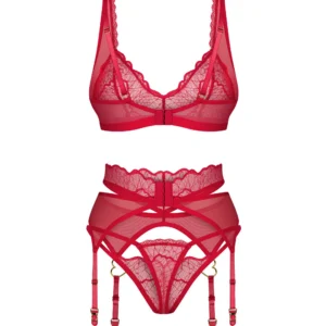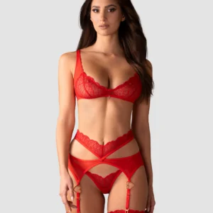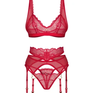 Cupide Desir ensemble 3 pièces Cet ensemble trois pièces rouge vibrant comprend une brassière, un string et une jarretière, fabriqués à partir de tissus confortables et élastiques pour un ajustement impeccable. Avec une coupe séduisante et des détails uniques, cet ensemble est conçu pour être un point focal captivant. – Comprend une jarretière, un string et une brassière- Tissus souples et extensibles pour plus de confort – dentelle avec motif moderne- sangles réglables et courroie de soutien- fermeture à crochet et à l?arrière- des accents dorés pour un look remarquable – composants sans nickel- Tissu : 90% polyamide, 10% élasthanne; 94% polyamide, 6% élasthanne- Conçu dans l?UE