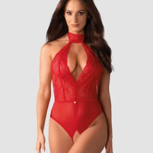 Dagmarie teddy avec un entrejambe ouvert Tentant par sa coupe sexy et ravissant par l’élégance de la dentelle, ce teddy de la collection Dagmarie est définitivement un must have pour de délicieux plaisirs dans la chambre. L’entrejambe ouvert procurera une sensation épicée, et la coupe chic vous donnera une allure belle et féminine. Aimeriez-vous tomber amoureux du rouge? Découvrez plus de détails :- body Dagmarie sans entrejambe- dentelle féminine chic – ajoute de l’élégance- décolleté sexy – attire l’attention- dos nu – un effet „waouh“ !- tour de cou tentant noué avec un ruban autour du cou – confort et coupe parfaite- détail argenté sur le devant – un détail charmant- entrejambe ouvert – un élément épicé !- matière agréable et délicate (90% polyamide, 10% élasthanne)