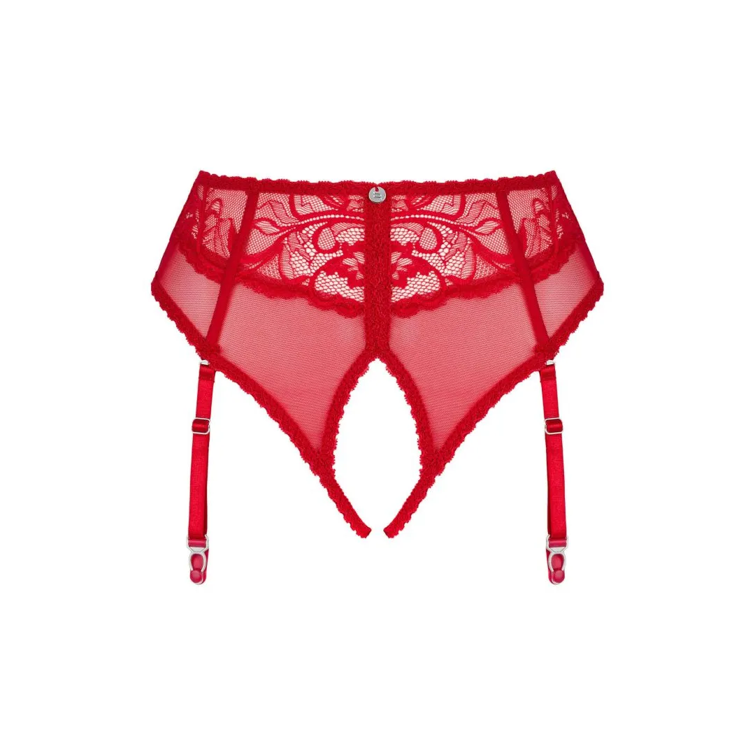 Strumpfhalter-Slip Dagmarie Steht eine super heiße und bewegte Party bevor? Wenn Sie nach etwas suchen, das die Temperatur noch weiter steigen lässt, entscheiden Sie sich für diesen Slip mit Strumpfhaltern aus der Dagmarie-Kollektion. Ihre verführerische Spitze und der offene Schritt ermöglichen Ihnen, eine Menge würziger Freuden zu genießen, an die Sie sich lange erinnern werden! Entdecken Sie mehr Details: – sexy Slip mit Strumpfhaltern – heißes Rot – verleiht Würze – elegante Spitze – verleiht Stil und Feinheit – offener Schritt – mehr Vergnügen – die Träger sind abnehmbar und verstellbar – perfekte Passform – angenehmes Material (90% Polyamid, 10% Elasthan)