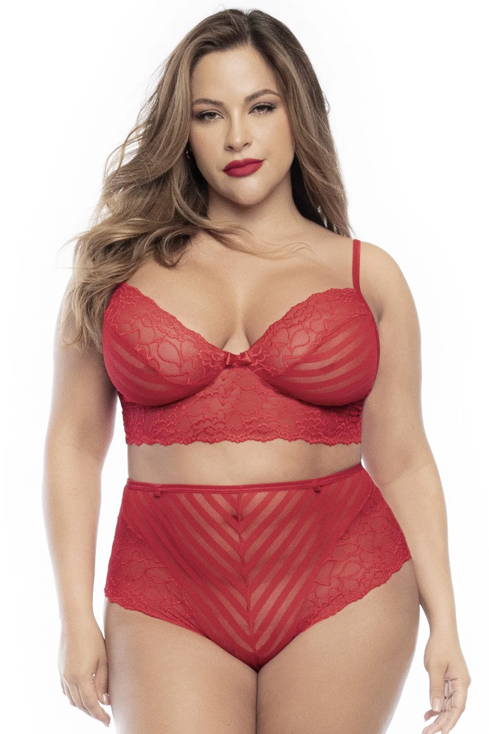 Dessous-Set, große Größe, zweiteilig aus roter Spitze – MAL8815XRED