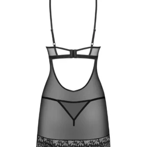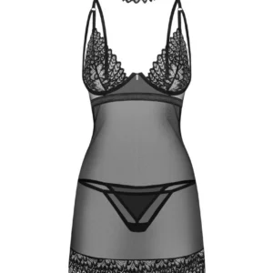 Chemise et string DonarellaNe pensez-vous pas que le minimalisme est synonyme de sexy? Vous avez tellement raison! Il suffit de regarder cet ensemble noir et la réponse est une évidence : oui! Une combinaison subtile de tissus, un design sensuel et des détails tentants sont la recette parfaite pour une ambiance chaude lors d?une soirée romantique! N?hésitez pas plus longtemps !- string, chemise, choker- fermeture à plusieurs étages et sangles réglables- bonnets à armatures- une combinaison intrigante de tissus- pendentif brillant- tissu souple- chemise, string (94% polyamide, 6% élasthanne); tour de cou (90% polyamide, 10% élasthanne)- conçus dans l?UE- ne contient pas de nickel