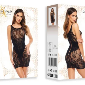 Une mini-robe noire sexy pour les amateurs de lingerie confortable et sensuelle. Le motif floral romantique est complété par des trous intéressants sur toute la longueur de la robe au dos. Au niveau de la taille, la matière est plus dense et plus foncée, ce qui affine optiquement la silhouette. Présenté dans un emballage élégant avec la photo présentant le produit. Taille: S/L Matériel: 90% Poliamide, 10% Élasthanne