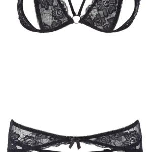 Dreiteiliges Set mit geteiltem BH, Strumpfhalter und schwarzem String – R2230348