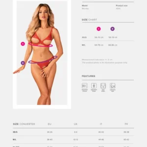 L’ensemble Bergamore exceptionnellement épicé a-t-il immédiatement attiré votre attention? Excellent! C’est le choix parfait si vous rêvez de sensations incroyablement chaudes. La dentelle rouge vous invite à découvrir les dimensions les plus surprenantes du plaisir…Découvrez plus de détails :- Ensemble Bergamore ? soutien-gorge ouvert et string entrejambe ouvert- dentelle de couleur rouge intense – look élégant- bretelles réglables – confort et commodité- fermeture réglable à l’arrière – s’adapte parfaitement à votre silhouette- bonnets à armatures- tissu délicat (90% polyamide, 10% élasthanne)