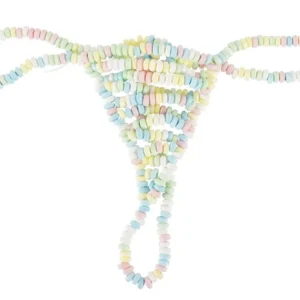 Liebesspiele und kleine geschmackliche Spielereien, während Sie Ihren Partner ausziehen. Essen Sie diesen Bonbon-String mit Vergnügen. Bonbon-String aus kleinen, bunten Zuckerbonbons. Gewicht: 145 g Zutaten: Dextrose, modifizierte Maisstärke, Trennmittel: Magnesiumsalze, Fettsäuren, Säuerungsmittel: Zitronensäure, Aromen, Farbstoffe E129, E102, E133