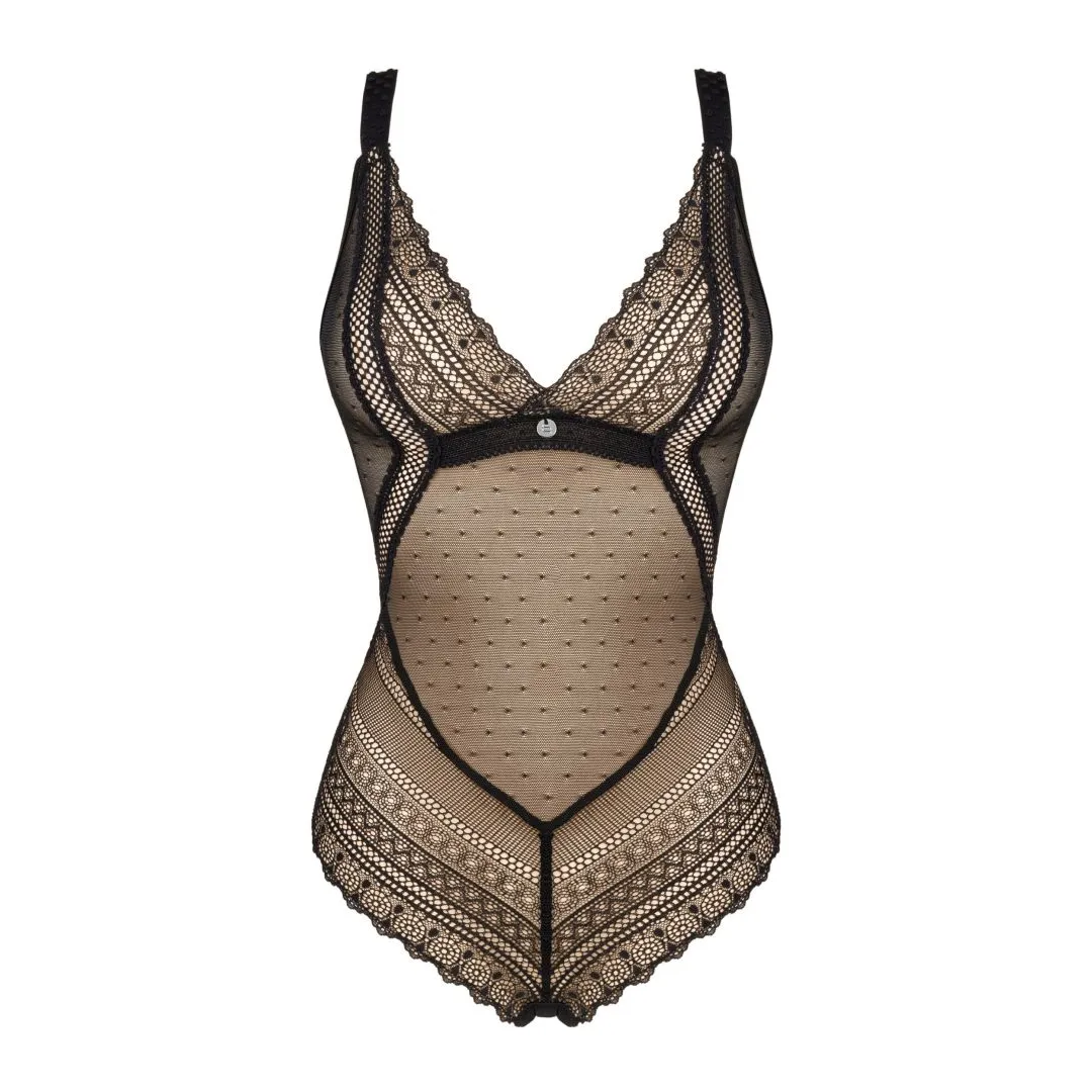 Dieser Body aus der Estiqua-Kollektion besticht durch seine Zartheit und beeindruckt durch seinen außergewöhnlich femininen Schnitt! Das leicht durchscheinende Material regt die Fantasie an und wird die Atmosphäre der gemeinsamen Momente mit Sicherheit beleben. Entfachen Sie Ihre Sinne und betonen Sie alle Vorzüge Ihrer Silhouette, und wir garantieren Ihnen, dass ein heißer Abend äußerst angenehm enden wird! Entdecken Sie mehr Details: – Trendiger Body Estiqua in Schwarz – Verstellbare Träger – perfekte Passform – Verschluss am Rücken – Tragekomfort – Sexy und durchscheinendes Material – entfacht die Fantasie! – Weiche und dreieckige Cups – schöner Look von Brust und Dekolleté – Elegante Spitzenverarbeitung – Offener Rücken – ein Blickfang – Elastisches und angenehmes Material (85% Polyamid, 15% Elasthan)