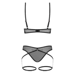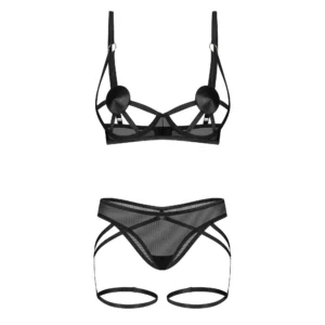 Euridia ensemble de 2 piècesLe set Euridia est une proposition audacieuse pour les femmes qui n?acceptent pas de compromis. Les bracelets noirs combinés avec des couvre-mamelons créent des motifs géométriques et exposent audacieusement le corps. Cet ensemble de lingerie est une preuve que parfois moins, c?est certainement plus.- soutien-gorge et culottes noirs- fixation multi-étagée et sangles réglables- design moderne fait de lanières reliées par des cache-tétons- tasses à armatures- spicy straps autour des cuisses- détails en or rose- tissu très élastique- 94% polyamide, 6% élasthanne- conçu dans l?UE- ne contient pas de nickelCe produit ne convient pas aux enfants de moins de 3 ans ? risque d?étouffement en raison des petites pièces qui peuvent être détachées du produit