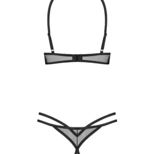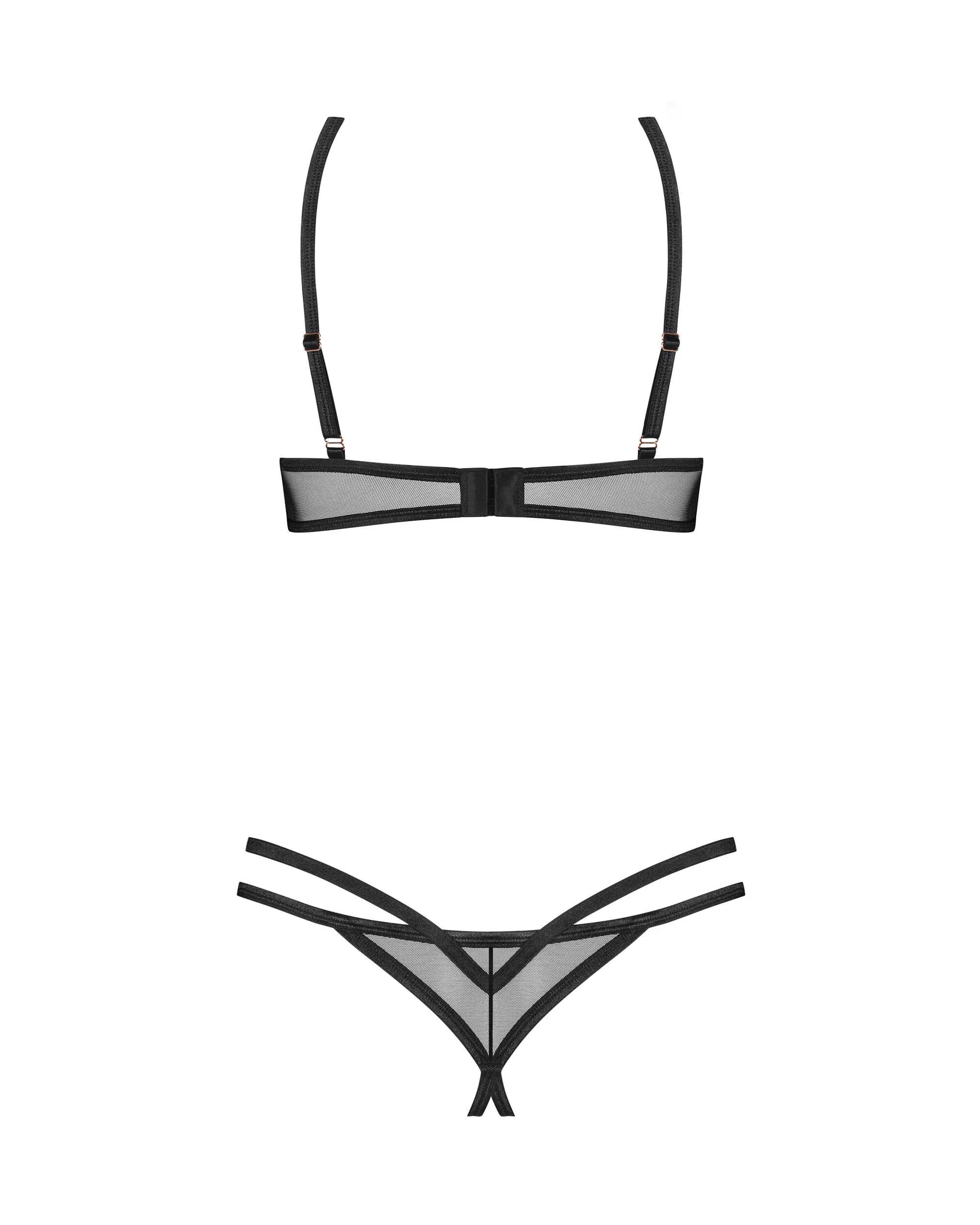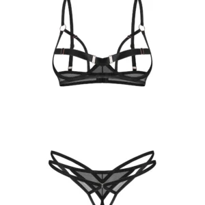 Soutien-gorge ouvert Euridia Un mélange de design ouvert et de style contemporain qui laisse peu de place à l?imagination. Défie les conventions, offrant une allure audacieusement révélatrice. Embrassez et explorez la liberté d?une sensualité audacieuse. Le soutien-gorge combine un design classique avec des détails modernes. Un design ouvert [quart de poitrine] en noir, décoré d?accessoires métalliques délicats dans une nuance d?or rose. Avec des longueurs de sangle réglables et un ajustement personnalisable assuré par une fermeture à crochet et à ?il, ce soutien-gorge promet à la fois confort et confiance. ? Soutien-gorge Euridia? poitrine ouvertes? à armature? fermeture réglable à l?arrière? bretelles ajustables? Accessoires rose doré? conçu dans l?UE? 94 % polyamide, 6 % élasthanne String ouvert Euridia De nouveaux sommets de sophistication. Une pièce audacieuse, conçue pour élever la tentation avec sa torsion de style ouvert. Amplifiez-le et célébrez votre liberté pour mettre en valeur votre individualité unique. Lanières noires modernes, avec un design unique et des tissus élastiques de haute qualité, pour le confort ultime pendant l?usage. La combinaison de maille de haute qualité et de lanières doubles garantit un ajustement parfait. Un subtil accent en métal doré rose orne le devant. ? String noir Euridia? entrejambe ouvert? Rose dorée? Intégration de lanières élastiques et de tissu transparent? matériau extensible? conçu dans l?UE? 94 % polyamide, 6 % élasthanne