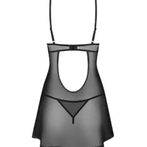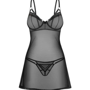 Nuisette et string EuridiaLaissez-vous tenter par l?élégance intemporelle et audacieuse. Les détails complexes offrent un aperçu alléchant de la peau. Exprimez-vous avec audace et sans crainte. Immergez-vous dans cette liberté.Nuisette classique à coupe ajustée, à armatures, avec bonnets de contour et à coupe profonde dans le dos. En maille transparente. Ajustement et tissu élastique pour un ajustement parfait. Élégance garantie avec des tissus de qualité supérieure et des accents de métal rose doré. L?ensemble comprend un string décoratif.? Nuisette et string Euridia en noir? fixation à plusieurs étages? bretelles réglables? bonnets à armatures? conçu dans l?UE 94 % polyamide, 6 % élasthanne