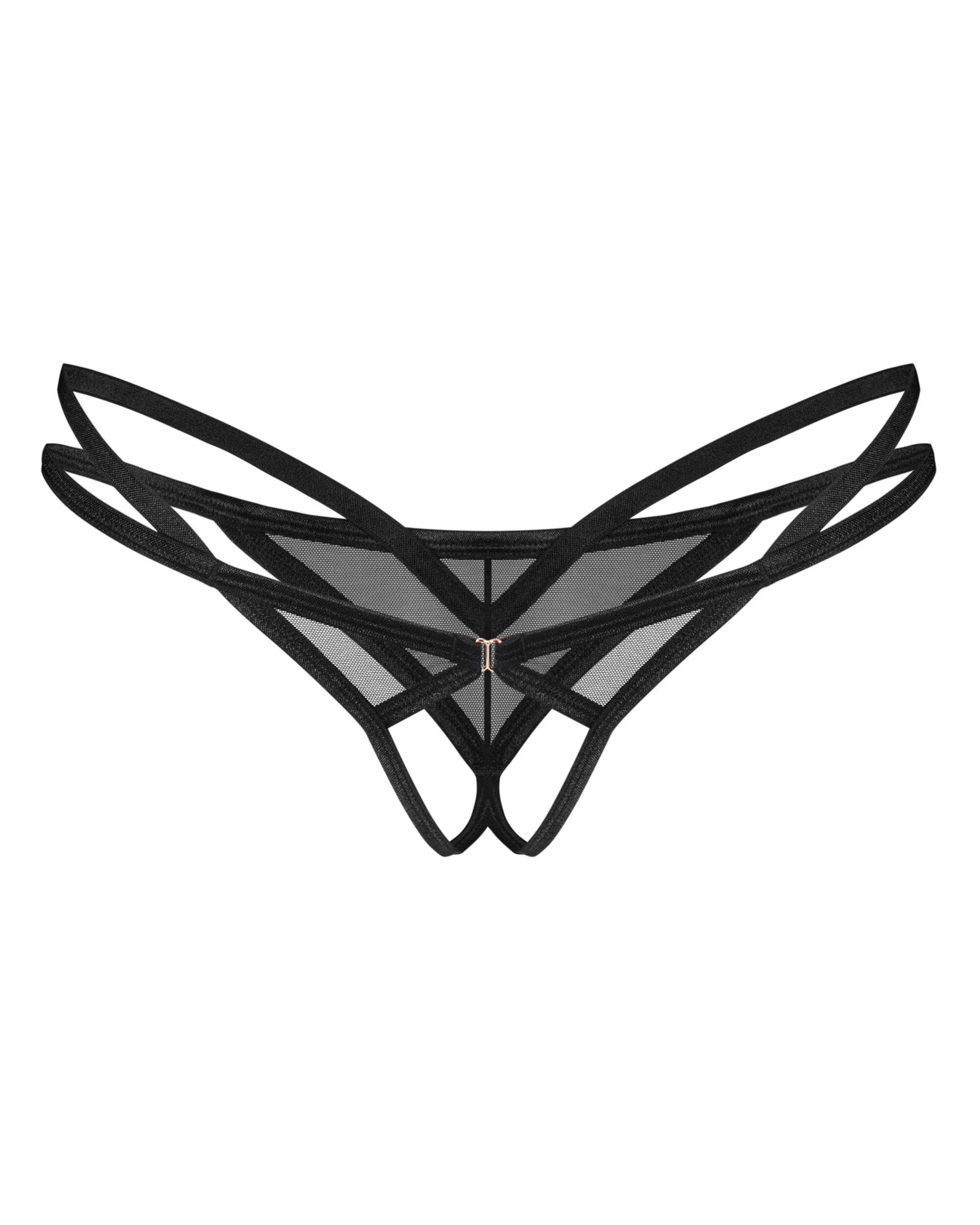 Neue Höhen der Raffinesse. Ein gewagtes Stück, entworfen, um die Versuchung mit seinem offenen Stil zu steigern. Verstärken Sie es und feiern Sie Ihre Freiheit, um Ihre einzigartige Individualität zu betonen. Moderne schwarze Riemen mit einem einzigartigen Design und hochwertigen elastischen Stoffen für ultimativen Komfort beim Tragen. Die Kombination aus hochwertigem Netz und doppelten Riemen garantiert eine perfekte Passform. Ein subtiler Akzent aus roségoldenem Metall ziert die Vorderseite.