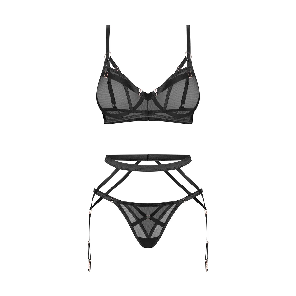 Euridia-BH Eine elegante Raffinesse, die die Individualität feiert. Die Quintessenz eines authentischen und mutigen Ausdrucks der Freiheit. Makellos, vielseitig und schick. Kreieren Sie einen einzigartigen Look für sich. Ein moderner Bügel-BH mit Kontur-Cups aus hochwertigen, weichen Stoffen. Mehrstufige Anpassung und Verschluss mit Haken sorgen für eine perfekte Passform. Frei kombinierbar mit anderen Produkten derselben Kollektion. ? Schwarzer Euridia-BH ? Bügel-Cups ? Roségoldene Akzente ? Weicher Stoff ? Liebe zum Detail ? Entworfen in der EU ? 94 % Polyamid, 6 % Elasthan Euridia Strumpfhalter Eine minimalistische Wunder, eine Hommage an schlichte Eleganz und Individualität. Tauchen Sie ein in eine Welt des befreienden Luxus, der die Trends übersteigt. Umschmeichelt mühelos Ihre Kurven und verspricht Komfort und Stil. Erweitern Sie Ihr Wäsche-Repertoire mit diesem subtilen, aber verführerischen Zusatz. Ein moderner, minimalistischer schwarzer Strumpfhalter aus flexiblen Premium-Stoffen. Der mehrstufige Hakenverschluss und die verstellbare Länge der Strumpfhalter sorgen für eine perfekte Passform. Ein zeitloses Design mit luxuriösem Finish. ? Strumpfhalter-Träger ? Verstellbarer Verschluss hinten ? Roségold ? Weicher Stoff ? Entworfen in der EU ? 94 % Polyamid, 6 % Elasthan Euridia Tanga Ein essentielles Stück, das die wilde Weiblichkeit feiert. Zeitgenössisches Design, ausgewogen und schlicht. Enthüllen Sie mutig und authentisch Ihr inneres Wesen. Minimalistisch und modern, der Tanga verfügt über eine verstellbare Taille, die eine perfekte Passform für Ihre einzigartige Silhouette gewährleistet. Kontrastierende Metallaccessoires in Roségold heben sich vom eleganten Schwarz ab. ? Schwarzer Tanga ? Größenanpassung ? Roségoldene Details ? Weichste Qualitätsstoffe ? Entworfen in der EU ? 94 % Polyamid, 6 % Elasthan