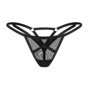 String Euridia Die Essenz der Freiheit verkörpert, mit Flair. Die Ausstrahlung ist diskret, mit einem Hauch von Intrige, in ihrem zeitlosen Schwarz. Das minimalistische Design hat einen zusätzlichen Bonus an verspieltem Charme. Schwarzer String aus hochwertigem, glattem Mesh. Die vorn gekreuzten Riemen, elegant mit einem dekorativen Detail verbunden, sind sein bestimmendes Merkmal. Die roségoldenen Metallaccessoires auf dem schwarzen Stoff schaffen einen auffälligen visuellen Kontrast. Stilistischer Minimalismus mit maximaler Aufmerksamkeit für Details. – Schwarzer String Euridia – Mischung aus elastischen Riemen und transparentem Stoff – Klassischer Schnitt auf neue Weise neu interpretiert – Entworfen in der EU – Weicher Stoff – 94 % Polyamid, 6 % Elasthan