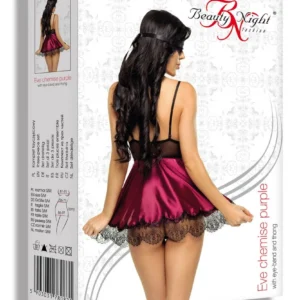 Surprenez avec ce babydoll noir et grenat de la marque de lingerie Beauty Night. Rendez-le encore plus fou lorsqu’il vous verra dans cette nuisette aérienne et souple. Conçue pour dégager toute votre féminité, elle possède un magnifique décolleté plongeant en dentelle. Une bande sous les seins met ces derniers en valeur tout en laissant la partie inférieure fluide, cachant ainsi des formes que vous ne souhaiteriez pas montrer.Un masque en dentelle vient compléter le produit avec son string assorti.Une pochette de rangement ou de lavage est incluse.Composition : 88% polyester, 12% élasthanne